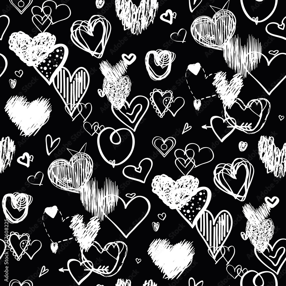 Hearts On Black Background Abstract Seamless Wallpaper Of The Surface Hand Drawn Love Signs Line Art Print For Banners Posters Flyers And Textiles Stock Vector Adobe Stock